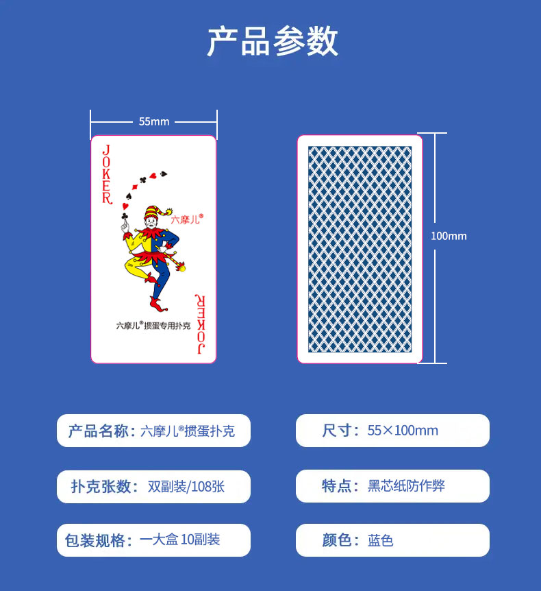 好玩的時(shí)光,寶貴的友人相聚時(shí)間,就該用好牌!歡迎大家通過(guò)化學(xué)加小店或淘寶搜索“六摩兒摜蛋撲克”購(gòu)買(mǎi)!如需個(gè)性化定制(至少1000副以上),請(qǐng)致電 186-7688-1096(微信同號(hào))、020-29116152 咨詢(xún)。