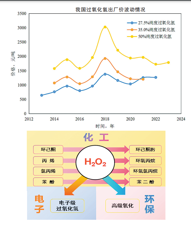 作為綠色氧化劑,過氧化氫在有機化工合成生產中廣泛應用,尤其在環(huán)氧化反應、選擇性氧化反應及其他特殊合成場景中發(fā)揮著重要作用,是多種重要化學品的關鍵原料。近年隨著下游綠色化工的發(fā)展,帶動我國過氧化氫產能迅速擴大。