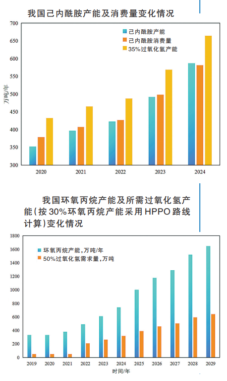 以27.5%純度計算,2024年,我國過氧化氫產能已突破2900萬噸/年,比上年增長25%,占世界總產能的70%以上。