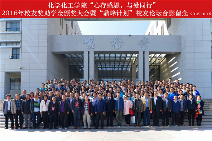鏈接:化學(xué)化工學(xué)院舉行2016年校友獎(jiǎng)助學(xué)金頒獎(jiǎng)大會(huì)暨“鼎峰計(jì)劃”校友論壇