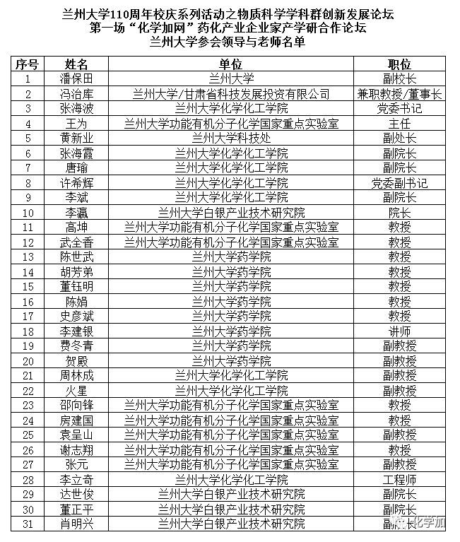 蘭州大學(xué)參會(huì)領(lǐng)導(dǎo)與老師名單