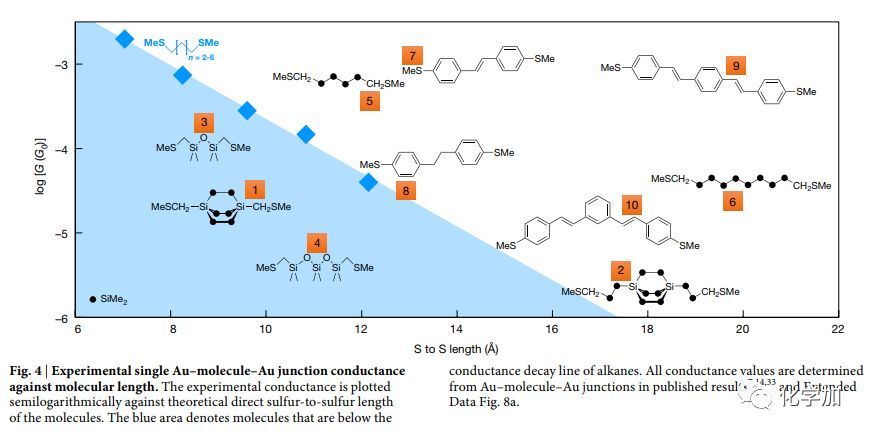 上海師范大學(xué)生命與環(huán)境科學(xué)學(xué)院化學(xué)系肖勝雄教授、美國(guó)哥倫比亞大學(xué)Colin Nuckolls 教授、Latha Venkataraman 教授、以及丹麥哥本哈根大學(xué)Gemma Solomon 教授通力合作,通過對(duì)環(huán)硅烷分子電子結(jié)構(gòu)的調(diào)控,開發(fā)了一種具有破壞性量子干涉效應(yīng)的Si[222]橋環(huán)硅烷材料,有效降低了分子電導(dǎo),實(shí)現(xiàn)了在1 nm以下的單分子超級(jí)絕緣,在單分子尺度上阻止了量子隧穿。研究成果以“Comprehensive suppression of single-molecule conductance using destructive σ-interference”(通過破壞性的σ鍵量子干涉實(shí)現(xiàn)單分子電導(dǎo)的全面抑制)為題,于2018年 6月6日在Nature(《自然》)上發(fā)表,論文鏈接:https://www.nature.com/articles/s41586-018-0197-9。