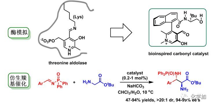 輔酶維生素B6在生物體內(nèi)表現(xiàn)出強(qiáng)大的催化功能,能催化很多轉(zhuǎn)化,但其催化能力在有機(jī)化學(xué)中不僅沒有得到足夠的認(rèn)識(shí),更沒有得到發(fā)展。趙寶國(guó)課題組一直致力于基于維生素 B6核心骨架的仿生催化的研究。在前期的研究中,已經(jīng)發(fā)展了多種手性吡哆醛/吡哆胺催化體系,實(shí)現(xiàn)了手性吡哆醛/吡哆胺催化仿生不對(duì)稱轉(zhuǎn)氨化,可以用于合成各種重要的手性氨基酸,這也是第一次實(shí)現(xiàn)的基于輔酶維生素B6核心骨架在仿生不對(duì)稱催化領(lǐng)域中的應(yīng)用(Org. Lett. 2015, 17, 5784;J. Am. Chem. Soc. 2016, 138, 10730;Org. Lett. 2016, 18, 3658)。