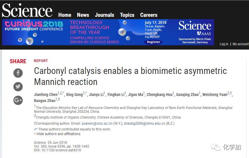 二、趙寶國(guó)教授課題組Science《科學(xué)》上發(fā)表論文,在仿生催化和有機(jī)小分子催化研究領(lǐng)域獲重要突破