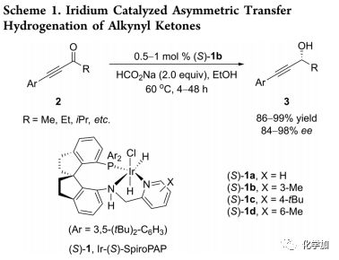 Scheme 1:銥催化的炔基酮的不對稱轉(zhuǎn)移氫化