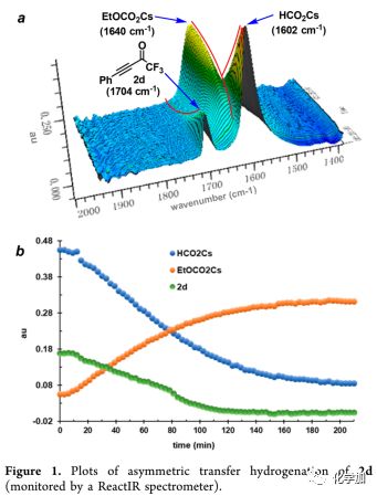 Figure 1:通過原位紅外光譜追蹤炔基酮2d與HCOOCs的不對稱轉(zhuǎn)移氫化過程