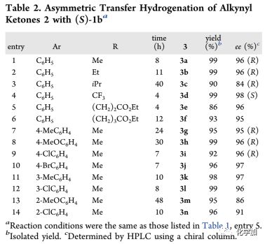 Table 2:不對稱轉(zhuǎn)移氫化底物芳基炔的擴(kuò)展基酮