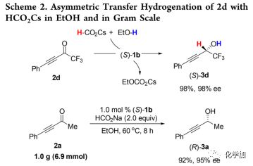 Scheme 2:利用甲酸銫/乙醇進(jìn)行克級規(guī)模的不對稱轉(zhuǎn)移氫化