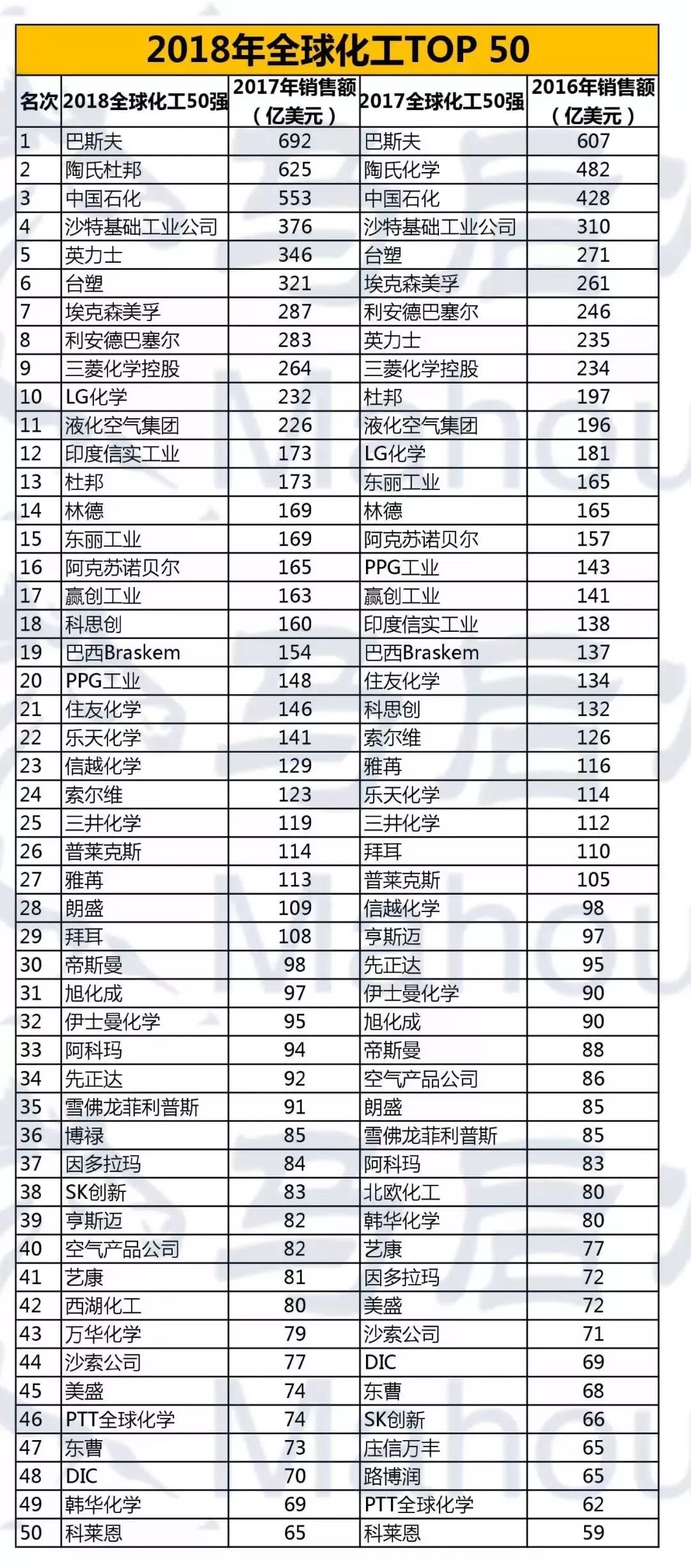 2018全球化工50強(qiáng)榜單新鮮出爐