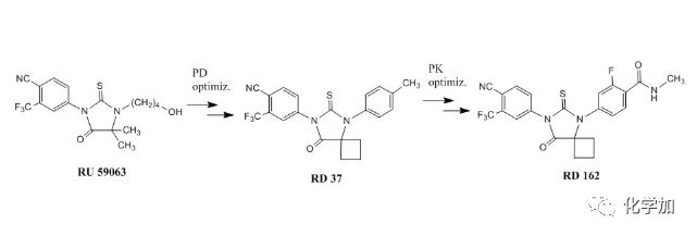 補充說明一點,RD162分子的作用機制新穎,為AR入核的translocation抑制劑,該文于2009年在Science發(fā)表,化合物的優(yōu)化結(jié)果則在同年的JMC發(fā)表。