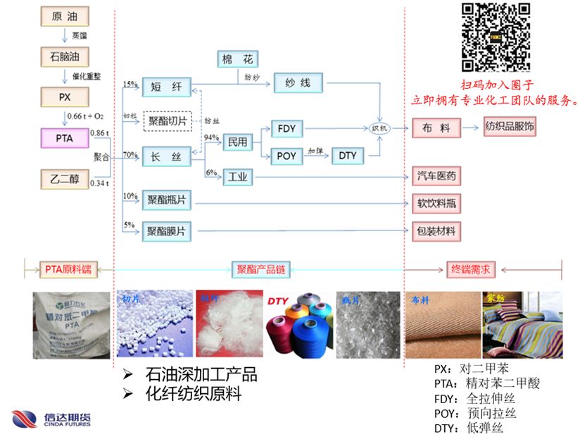 為什么我們先說PTA,而不是說原油,因?yàn)镻TA期貨是能源化工品中最簡單的,產(chǎn)業(yè)鏈清晰明了,是入門產(chǎn)品。從原油開始的話,我們怕把你嚇走了,這樣我辛苦寫的文章就沒有什么意義啦。