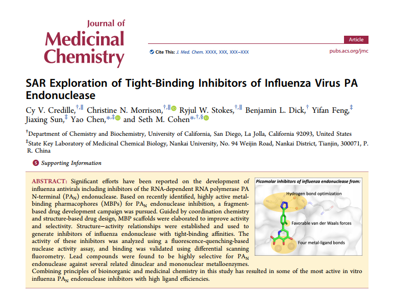 南開大學(xué)藥學(xué)院、藥物化學(xué)生物學(xué)國家重點實驗室陳瑤研究員與加利福尼亞大學(xué)圣迭戈分校Seth M. Cohen教授為論文的共同通訊作者。