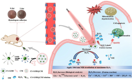圖1 過氧化氫引導(dǎo)近紅外二區(qū)光照增強(qiáng)CS-GOD@CM仿生納米顆粒化學(xué)動力治療腫瘤。