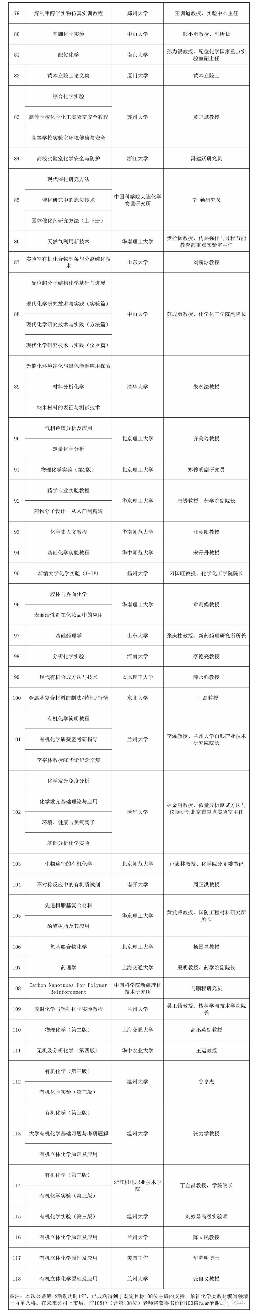 化學(xué)、化工、醫(yī)藥類教科書、圖書、工具書、論文集的主編、副主編,及本領(lǐng)域書籍的出版社