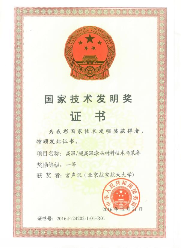2017年1月9日,2016年度國家科學(xué)技術(shù)獎勵大會在人民大會堂隆重舉行。在全場雷鳴般的掌聲中,我校材料科學(xué)與工程學(xué)院宮聲凱教授從國家主席習(xí)近平手中接過了紅彤彤的證書,他憑借研究項目“高溫/超高溫涂層材料技術(shù)與裝備”,以第一完成人的身份榮獲2016年度國家技術(shù)發(fā)明獎一等獎。
