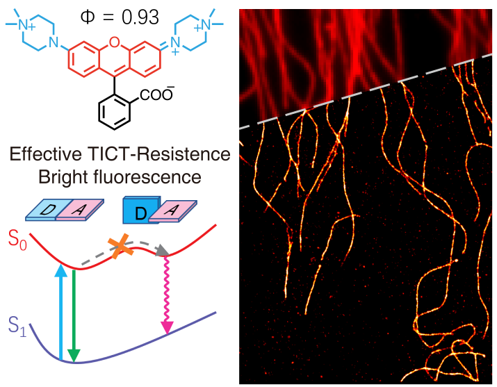 超分辨成像的效果非常依賴于熒光染料的性能,其要求染料具有極高的發(fā)光亮度和穩(wěn)定性,這是由于超分辨熒光成像,相比于傳統(tǒng)光學(xué)成像,是建立在更大規(guī)模的光子統(tǒng)計(jì)數(shù)據(jù)的基礎(chǔ)上。目前適用于超分辨的熒光染料依然非常的稀少,因此人們迫切希望能提出普適性的策略,理性地設(shè)計(jì)出更多的超分辨熒光染料。