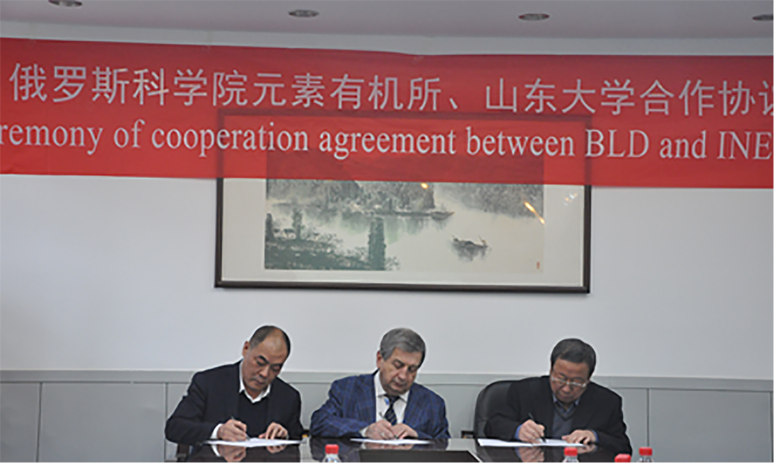 24日下午,化學(xué)與化工學(xué)院院長郝京誠代表學(xué)校向Aziz Muzafarov院士頒發(fā)了聘書,聘請(qǐng)Aziz Muzafarov院士為山東大學(xué)客座教授。隨后,俄羅斯科學(xué)院元素有機(jī)化合物研究所、寶龍達(dá)與山東大學(xué)簽署了三方合作協(xié)議。25日-26日,Aziz Muzafarov院士、朱曉敏博士與重點(diǎn)實(shí)驗(yàn)室核心成員一同赴寶龍達(dá)進(jìn)行技術(shù)轉(zhuǎn)化洽談并簽署了技術(shù)合作協(xié)議。