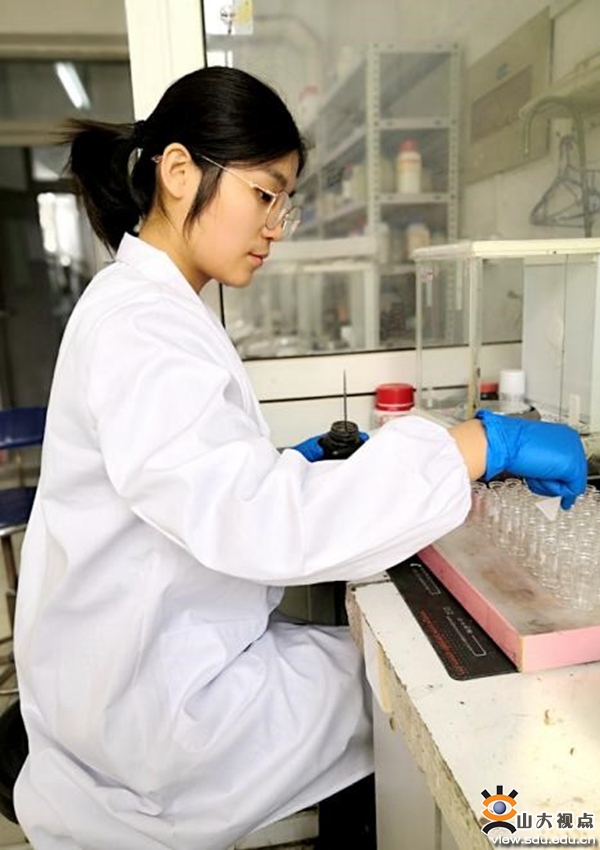 冬日的早晨寒風(fēng)陣陣,明媚的陽(yáng)光灑在校園里,照在每一個(gè)勤奮刻苦的山大學(xué)子身上。在山東大學(xué)化學(xué)新樓的實(shí)驗(yàn)室內(nèi),越過(guò)琳瑯滿目的實(shí)驗(yàn)器材,記者見(jiàn)到了被評(píng)為“學(xué)術(shù)之星”的張閃閃。她穿著白大褂,正專心敲打著鍵盤(pán),像往常一樣準(zhǔn)備開(kāi)始一天的實(shí)驗(yàn)室生活。