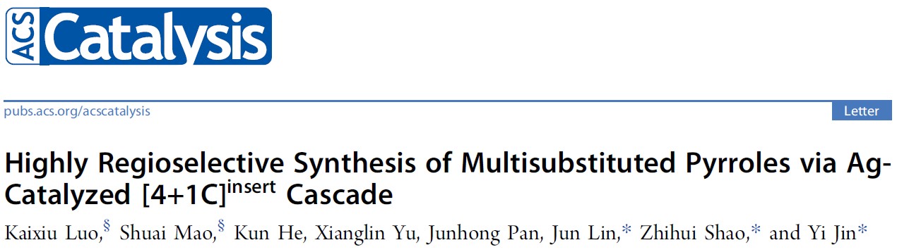 近日,云南大學(xué)自然資源藥物化學(xué)教育部重點(diǎn)實(shí)驗(yàn)室/化學(xué)科學(xué)與工程學(xué)院林軍、金毅教授團(tuán)隊(duì)、邵志會教授團(tuán)隊(duì)、以及西安交通大學(xué)毛帥副教授共同合作,發(fā)展了一種新穎的銀催化[4+1C]插入串級合成方法,高效、高區(qū)域選擇性和高化學(xué)選擇性的合成了一系列結(jié)構(gòu)多樣性吡咯類化合物。研究成果在催化領(lǐng)域頂級期刊《ACS Catalysis》(最新IF為12.221)上在線發(fā)表。該論文的第一作者為2018級博士研究生羅開秀,毛帥副教授為共同第一作者,通訊作者為金毅教授、邵志會教授和林軍教授。云南大學(xué)為第一通訊作者單位。(ACS Catal. 2020, DOI: 10.1021/acscatal.9b05360)
