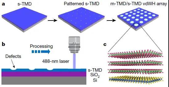 制備的大規(guī)模范德華異質(zhì)結(jié)陣列。