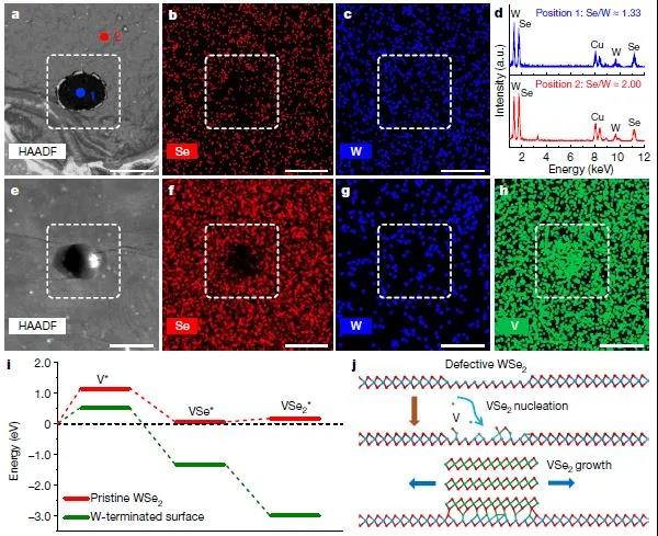 VSe2在圖案化WSe2上的成核生長機(jī)制。