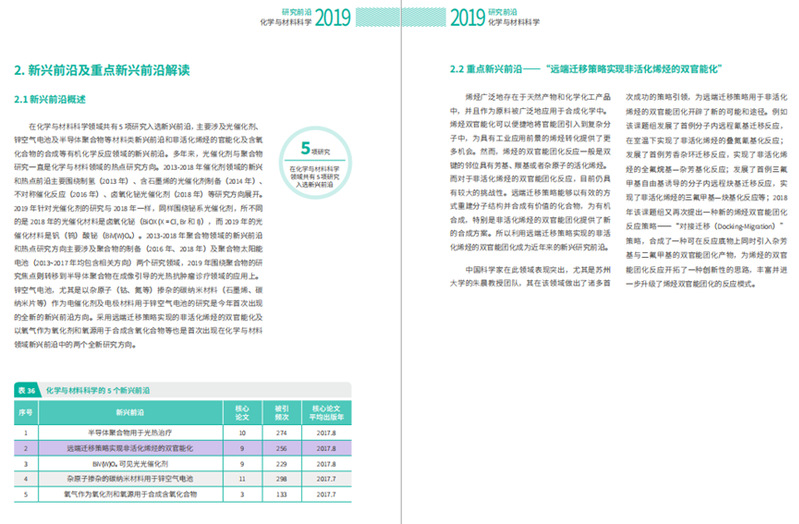 近日,中科院科技戰(zhàn)略咨詢研究院、中科院文獻(xiàn)情報(bào)中心與科睿唯安聯(lián)合向全球發(fā)布了《2019研究前沿》報(bào)告和《2019研究前沿?zé)岫戎笖?shù)》報(bào)告。該報(bào)告反映相關(guān)學(xué)科發(fā)展趨勢(shì),并評(píng)估世界主要國家在十個(gè)大學(xué)科領(lǐng)域100個(gè)熱點(diǎn)前沿和37個(gè)新興前沿的研究活躍程度。其中,蘇州大學(xué)材料與化學(xué)化工學(xué)部朱晨教授團(tuán)隊(duì)所從事的研究領(lǐng)域“遠(yuǎn)端遷移策略實(shí)現(xiàn)非活化烯烴的雙官能化”入選為化學(xué)與材料科學(xué)5個(gè)重點(diǎn)新興前沿領(lǐng)域之一,并是首次出現(xiàn)的兩個(gè)全新研究方向之一。報(bào)告中描述: