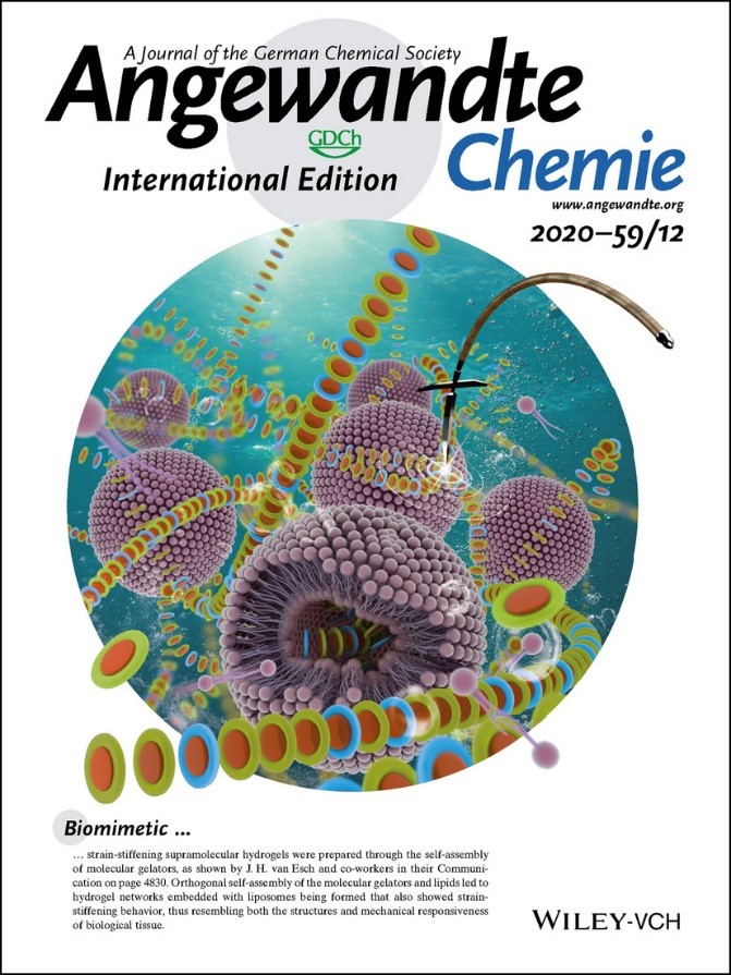 近日,華東理工大學(xué)化工學(xué)院特聘研究員王義明與郭旭虹教授團(tuán)隊在仿生自組裝水凝膠領(lǐng)域的研究工作中取得了新進(jìn)展,研究成果以“Biomimetic strain-stiffening self-assembled hydrogels”為題發(fā)表在《德國應(yīng)用化學(xué)》上,并被選為當(dāng)期的底封。