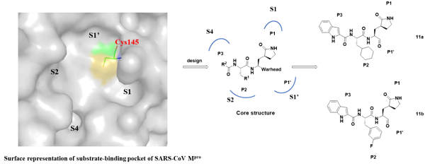 圖1 SARS-CoV-2主蛋白酶抑制劑的設(shè)計(jì)策略及化合物11a和11b的化學(xué)結(jié)構(gòu)