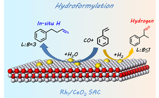 近日,中國科學(xué)院大連化學(xué)物理研究所催化與新材料研究室喬波濤研究員和張濤院士團(tuán)隊(duì)在單原子催化氫甲?;芯糠矫嫒〉眯逻M(jìn)展,首次發(fā)現(xiàn)通過反應(yīng)耦合的方式調(diào)控產(chǎn)物的區(qū)域選擇性:在不加任何配體的情況下,通過與水汽變換反應(yīng)耦合,苯乙烯可高選擇性地轉(zhuǎn)化為3-苯基丙醛,正異比高達(dá)3:1。