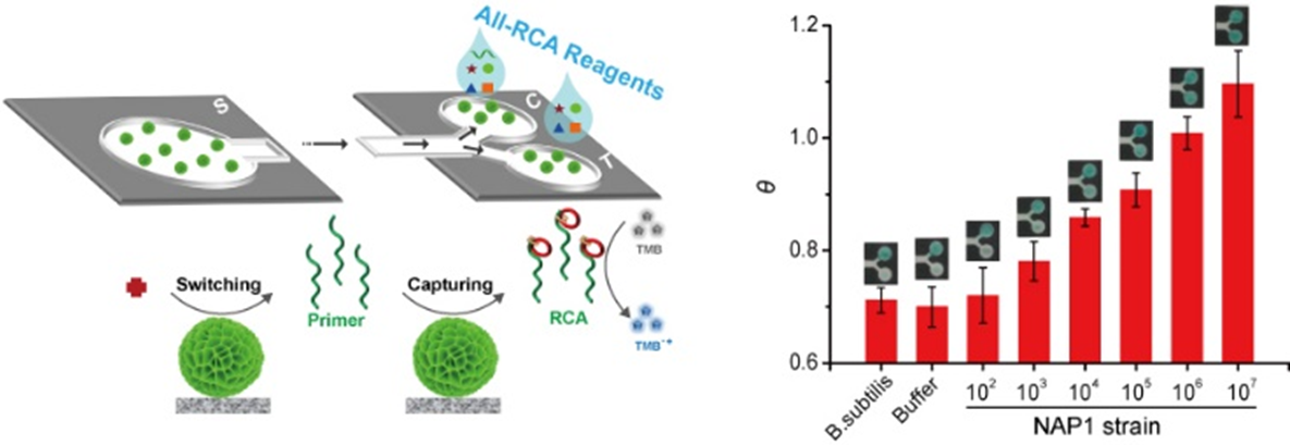 在此基礎(chǔ)上,發(fā)展了一種簡(jiǎn)便的微流控紙分析器件,實(shí)現(xiàn)了糞便樣品中艱難梭菌的可視化檢測(cè),與商業(yè)化的檢測(cè)試劑盒相比,該器件在較短的時(shí)間內(nèi)可以達(dá)到更高的靈敏度。對(duì)于流行菌株NAP1,該器件在30分鐘內(nèi)可以檢測(cè)到104個(gè)細(xì)菌。