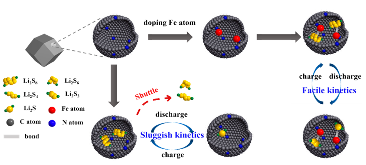 近日,青科大高分子學(xué)院山東省濰坊市高層次創(chuàng)新創(chuàng)業(yè)人才王存國(guó)博士(第一作者)指導(dǎo)碩士研究生宋和偉(第二作者)與中科院蘇州納米所劉立偉、李奇兩位研究員課題組聯(lián)合研發(fā),在大容量鋰/硫電池方面取得新進(jìn)展,提高了硫基復(fù)合電極材料的電導(dǎo)率,抑制了電池充放電過(guò)程中的穿梭效應(yīng)及體積膨脹等現(xiàn)象,團(tuán)隊(duì)相關(guān)工作在英國(guó)皇家化學(xué)會(huì)(RSC)著名期刊《Journal of Materials Chemistry A》(2020, 8, 3421-3430,IF=10.73,中科院1區(qū),Doi: : 10.1039/c9ta11680j),以Iron single-atom catalyst anchored on nitrogen-rich MOF-derived carbon nanocage to accelerate polysulfide redox conversion for lithium sulfur batteries為題發(fā)表。(青島科技大學(xué)為第一合作單位。)
