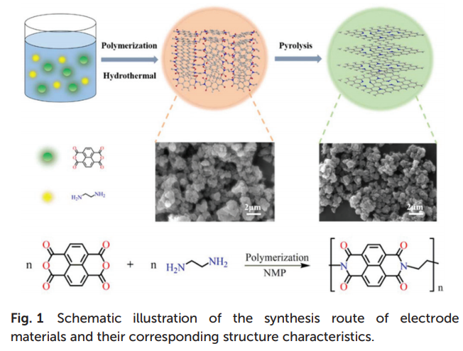 文中采用1、4、5、8-萘四甲酸二酐(NTCDA)為原材料,以聚酰亞胺(PI-2)為正極,以預(yù)先嵌入鈉離子的碳化聚酰亞胺(CPI)為負(fù)極,設(shè)計(jì)和開(kāi)發(fā)了一種新型全塑鈉離子電池,鈉離子全電池在電流密度為100 mA/ g放電時(shí),初始容量達(dá)157 mAh/ g,其平均電壓約為1.47 V,能量密度達(dá)254 Wh/ kg, 而且功率密度達(dá)614 W/kg,降低了有機(jī)物電極材料存在溶解性等缺點(diǎn),為鈉離子全電池在實(shí)際中得到應(yīng)用提供了可行性。