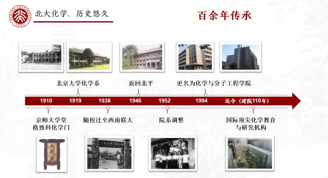 北京大學(xué)化學(xué)學(xué)科肇始于1910年成立的京師大學(xué)堂格致科化學(xué)門,是中國(guó)國(guó)立大學(xué)中最早設(shè)立的化學(xué)系,1952年院系調(diào)整時(shí)由北京大學(xué)、清華大學(xué)、燕京大學(xué)三?;瘜W(xué)系合并重組而成,1994年更名為化學(xué)與分子工程學(xué)院,簡(jiǎn)稱化學(xué)學(xué)院。