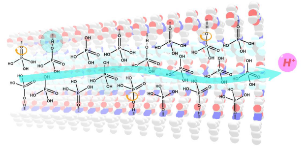 當(dāng)前,化石燃料所帶來(lái)的環(huán)境污染和能源危機(jī)日益嚴(yán)峻,加速新能源的開(kāi)發(fā)與利用迫在眉睫。燃料電池(fuel cell)作為一種將“化學(xué)能轉(zhuǎn)換為電能”的能量轉(zhuǎn)換裝置,由于其能量轉(zhuǎn)換效率高、能量密度高、無(wú)噪音無(wú)污染,成為改變?nèi)祟惿畹氖笮录夹g(shù)之一。性能優(yōu)異的質(zhì)子交換膜是燃料電池研發(fā)中核心技術(shù)。過(guò)去數(shù)十年來(lái),質(zhì)子傳導(dǎo)材料的發(fā)展產(chǎn)生了各種全氟化聚電解質(zhì),例如Nafion。但是,由于這類材料適用溫度范圍窄、成本高、耐用性不足,限制了在耐高溫和高能量密度燃料電池中的應(yīng)用。