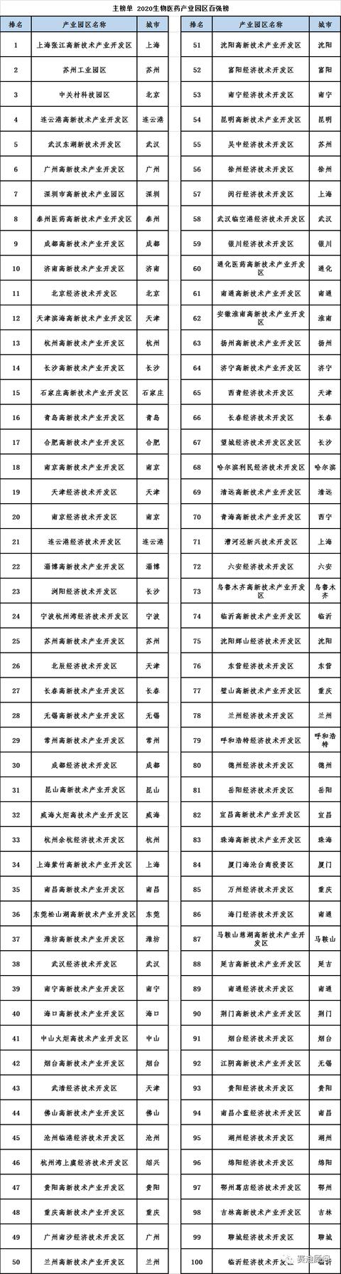 主榜單 2020生物醫(yī)藥產(chǎn)業(yè)園區(qū)百?gòu)?qiáng)榜