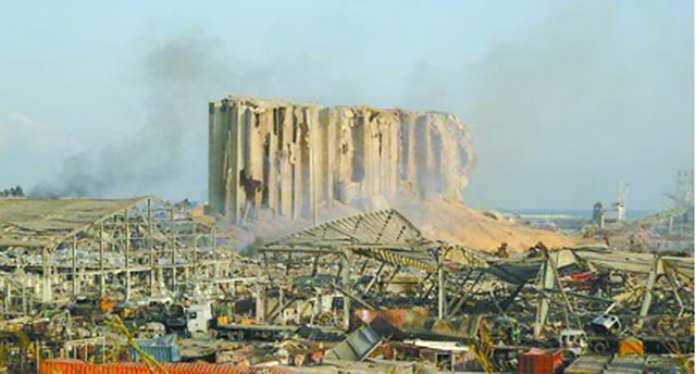 黎巴嫩的貝魯特港口大爆炸廢墟