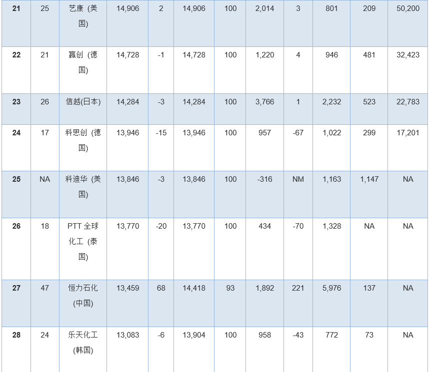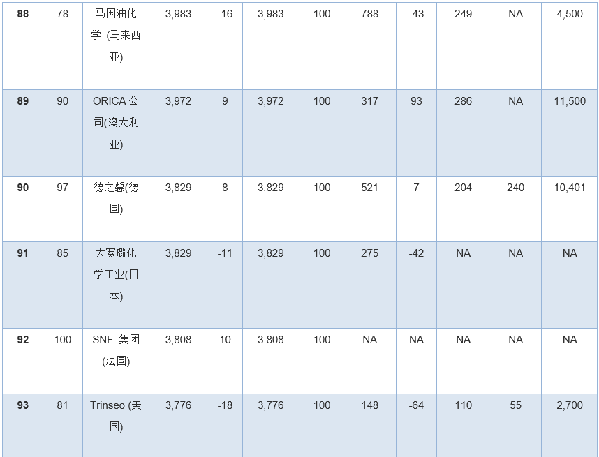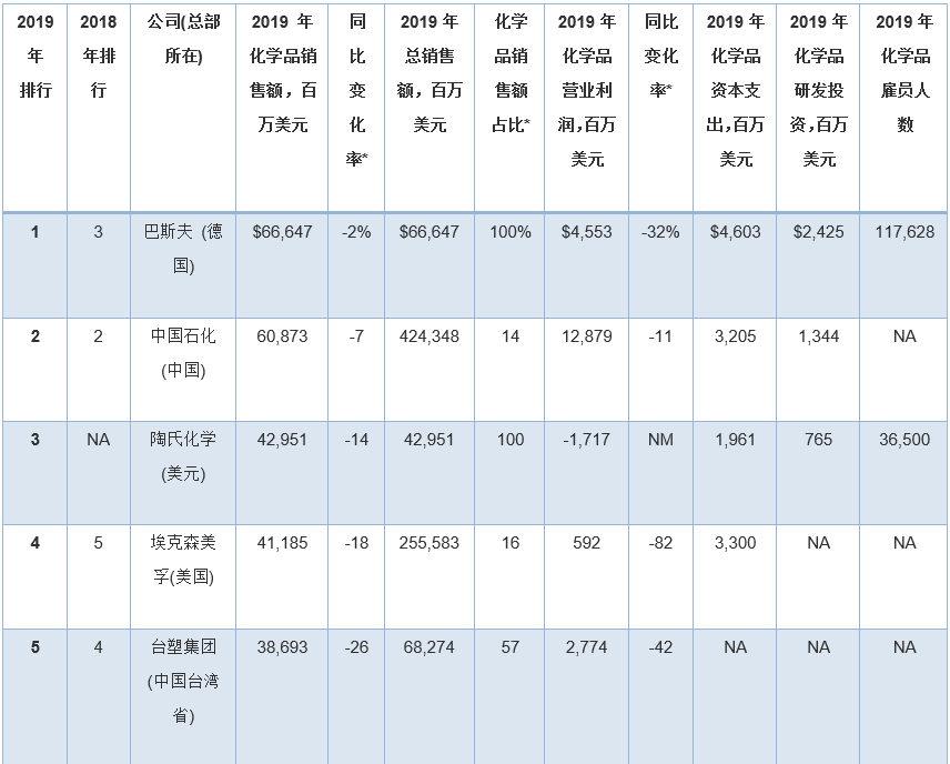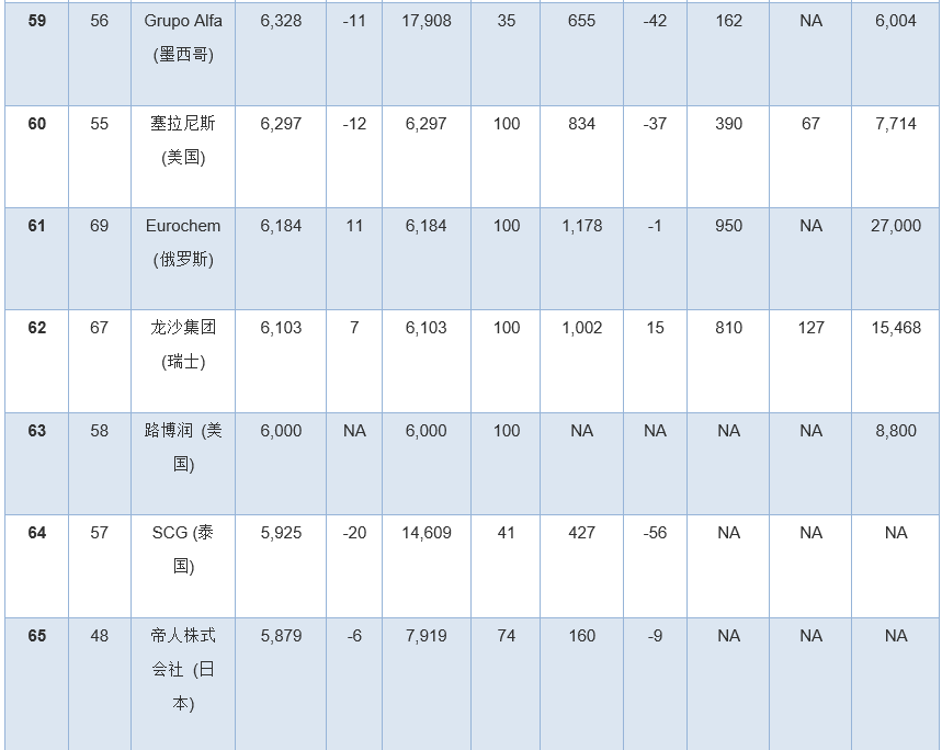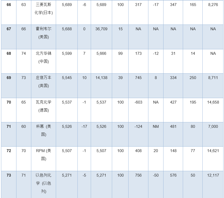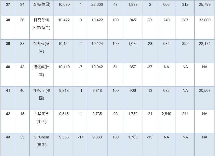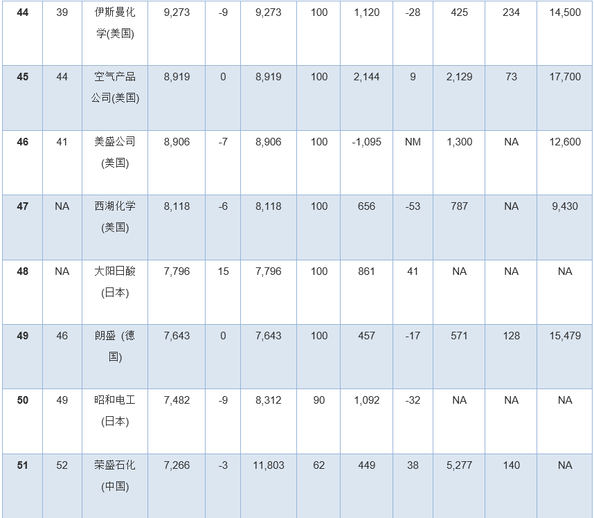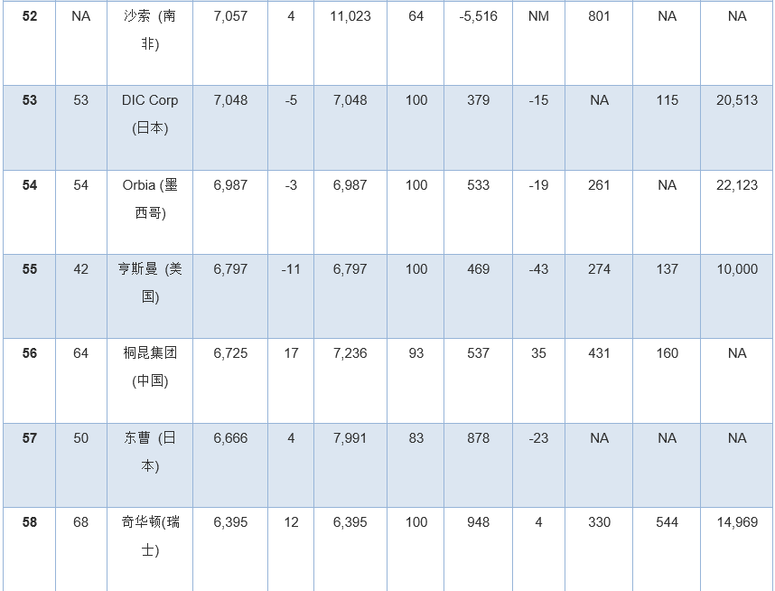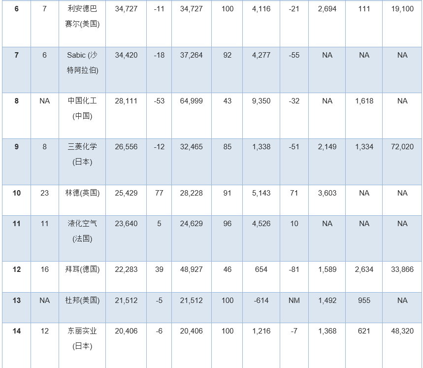 此外,幾家擁有大量化學品業(yè)務的公司因為沒有全面公開報告化學品收入,所以未能參加本年度排行榜。其中包括英力士、科赫工業(yè)、殼牌、道達爾和中國石油(PetroChina)。