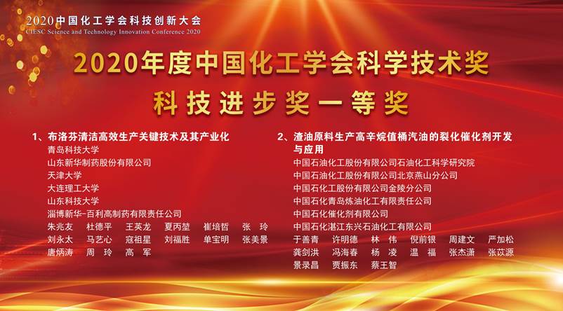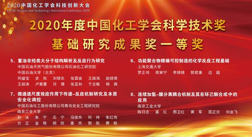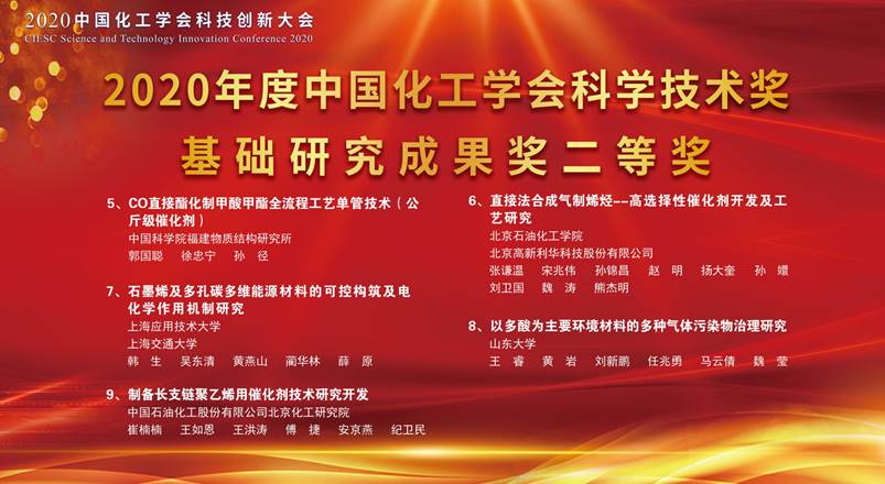 2020年度中國化工學(xué)會科學(xué)技術(shù)獎獲獎名單