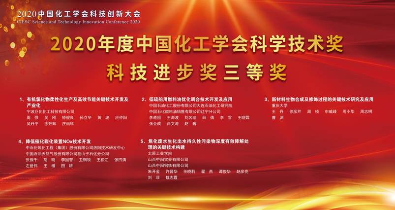 9月15日,在北京召開的2020中國化工學(xué)會科技創(chuàng)新大會上,第十二屆“侯德榜化工科學(xué)技術(shù)獎”隆重頒發(fā)。中國石化石油化工科學(xué)研究院胡志海等五位同志獲得侯德榜化工科學(xué)技術(shù)獎“成就獎”;天津大學(xué)郝紅勛等十四位同志獲得侯德榜化工科學(xué)技術(shù)獎“創(chuàng)新獎”;中科院過程工程研究所曾璽等三十位同志獲得侯德榜化工科學(xué)技術(shù)獎“青年獎”。