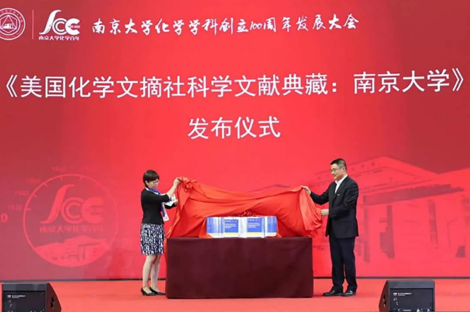作為全球最大的科學(xué)組織之一,美國化學(xué)會專程向南大化學(xué)學(xué)科創(chuàng)立百年發(fā)來賀信。美國化學(xué)文摘社中國區(qū)總經(jīng)理馬清揚(yáng)女士代表美國化學(xué)會主席H.N.Cheng博士和美國化學(xué)文摘社總裁Manuel Guzman先生宣讀賀信,并介紹《美國化學(xué)文摘社科學(xué)文獻(xiàn)典藏:南京大學(xué)》系列圖書。校黨委副書記薛海林與馬清揚(yáng)共同為《美國化學(xué)文摘社科學(xué)文獻(xiàn)典藏:南京大學(xué)》系列叢書揭幕。