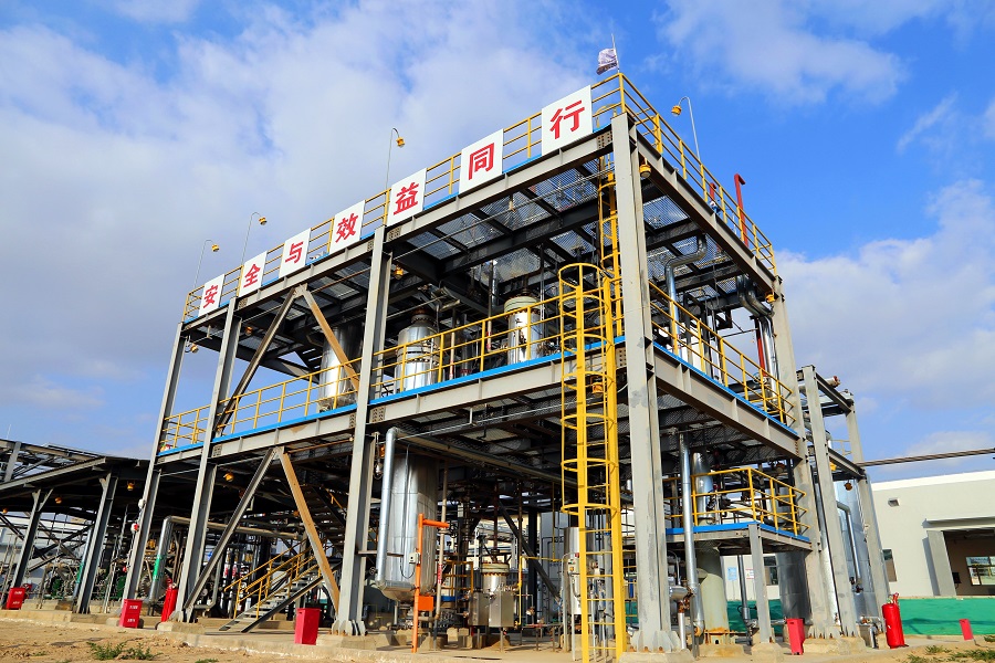 園區(qū)內(nèi)的“液態(tài)太陽(yáng)燃料合成示范項(xiàng)目”是中科院大連化物所李燦院士根據(jù)中國(guó)能源與生態(tài)環(huán)境現(xiàn)況在西部地區(qū)先行先試的一個(gè)項(xiàng)目,是全球首套規(guī)模化(千噸級(jí))合成綠色甲醇示范裝置?!绊?xiàng)目的意義在于提供了一條從可再生能源到綠色液體燃料甲醇生產(chǎn)的全新途徑。”姜錦說(shuō)。