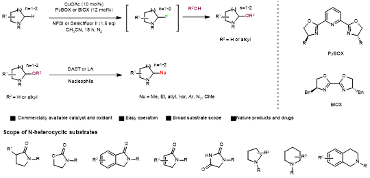 圖1. 氮雜環(huán)α位碳?xì)滏I官能化反應(yīng)