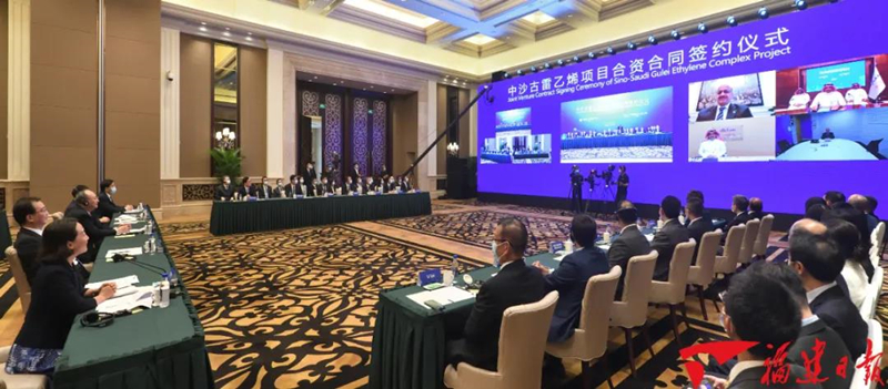尹力代表省委、省政府向項(xiàng)目正式簽約表示祝賀。他說(shuō),福建是海上絲綢之路的起點(diǎn),沙特是最早參與“一帶一路”倡議的國(guó)家之一。這次雙方合作的中沙古雷乙烯項(xiàng)目,是“中沙產(chǎn)能與投資合作重點(diǎn)項(xiàng)目”,對(duì)于推進(jìn)共建“一帶一路”倡議同沙特“2030愿景”對(duì)接,進(jìn)一步加深和鞏固中沙長(zhǎng)期合作與友誼,都具有重要意義。福建高度重視合作項(xiàng)目,希望雙方共同努力,實(shí)現(xiàn)互利共贏。我們?cè)概c沙特基礎(chǔ)工業(yè)公司一道,攜手推進(jìn)科技創(chuàng)新,加強(qiáng)產(chǎn)業(yè)關(guān)鍵核心技術(shù)聯(lián)合攻關(guān),研發(fā)生產(chǎn)更多高附加值產(chǎn)品,滿足市場(chǎng)需要;攜手打造現(xiàn)代產(chǎn)業(yè),以項(xiàng)目落地為契機(jī),培育世界一流石化企業(yè),建設(shè)世界一流石化產(chǎn)業(yè)園區(qū),推動(dòng)福建石化產(chǎn)業(yè)不斷發(fā)展壯大;攜手開(kāi)拓國(guó)際市場(chǎng),相互牽線搭橋,通過(guò)多種方式加強(qiáng)更多領(lǐng)域合作,共同塑造國(guó)際合作和競(jìng)爭(zhēng)新優(yōu)勢(shì)。尹力表示,福建各有關(guān)方面將加緊工作節(jié)奏,在防控好疫情的前提下,加快項(xiàng)目建設(shè)進(jìn)度,推動(dòng)早投產(chǎn)、早達(dá)產(chǎn)、早見(jiàn)效。