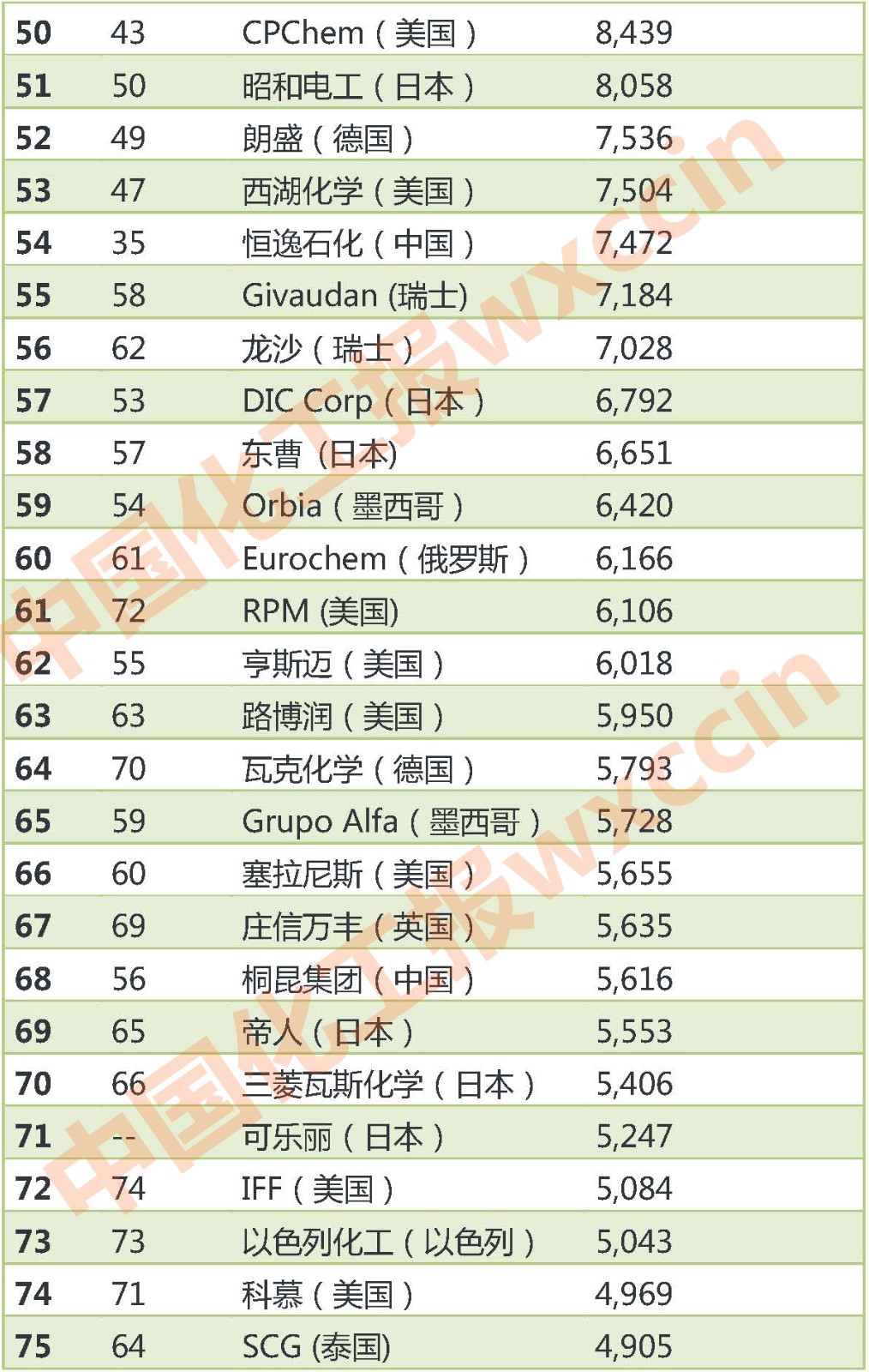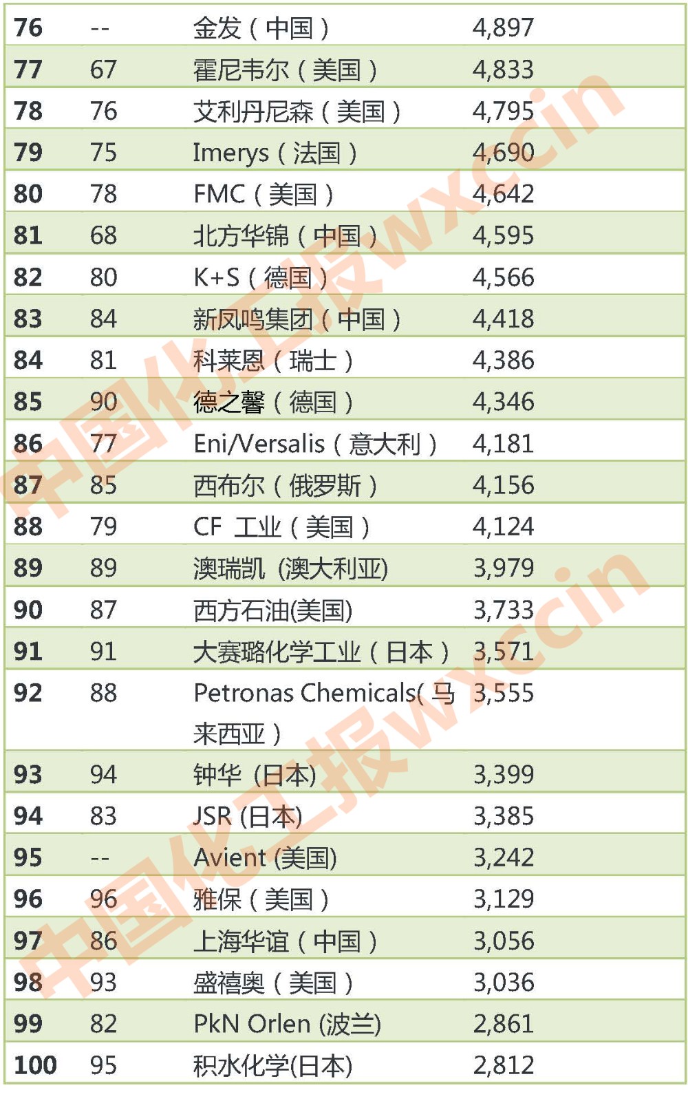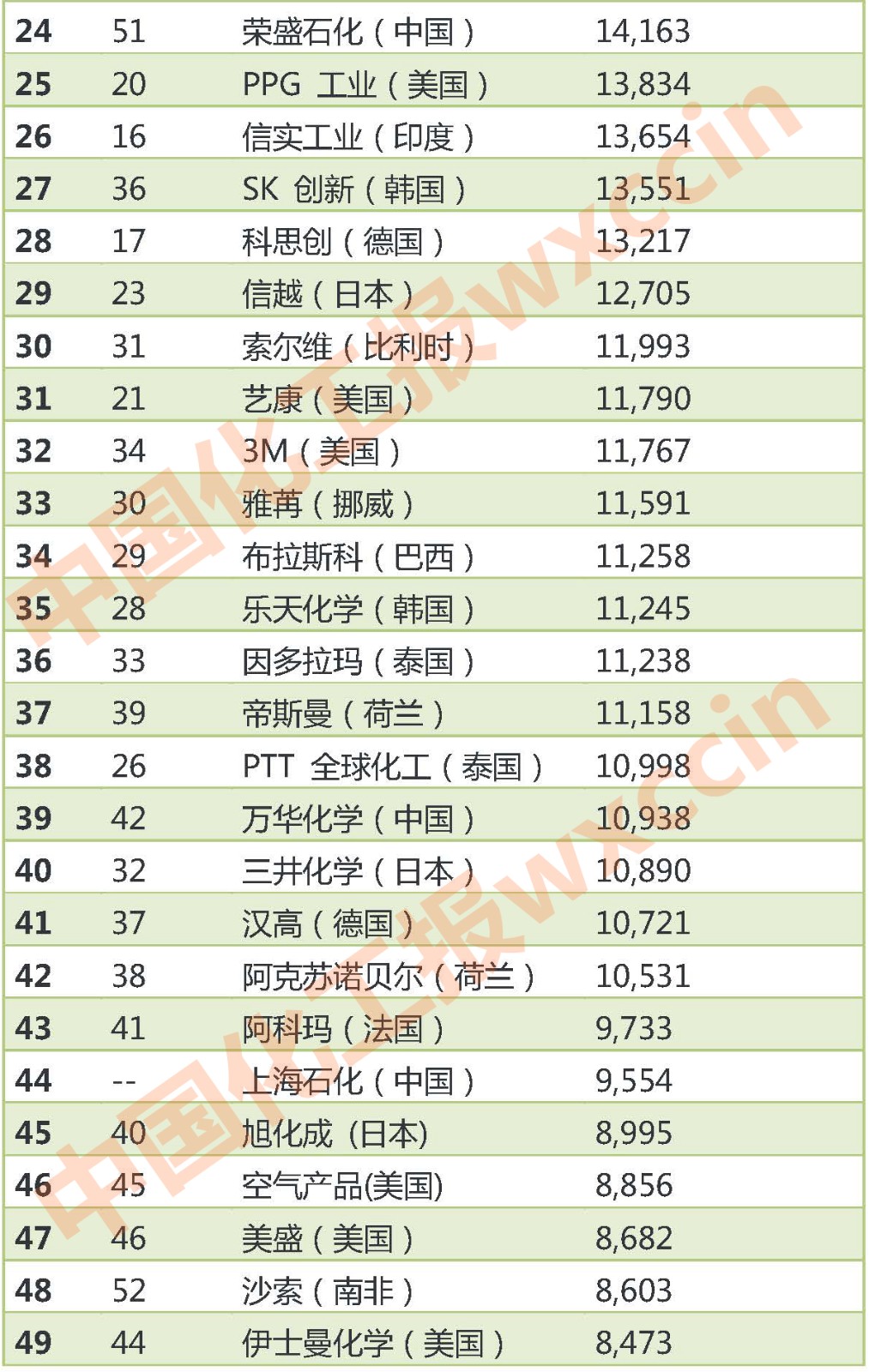 《化學(xué)周刊》十億美元俱樂(lè)部是對(duì)公開(kāi)披露收入的世界頂級(jí)化學(xué)品制造商進(jìn)行的年度排名。由于數(shù)據(jù)采集差異等,可能與上年度的十億美元俱樂(lè)部排行榜并不完全一致。此外,幾家擁有大量化學(xué)品業(yè)務(wù)的公司因沒(méi)有全面公開(kāi)報(bào)告化學(xué)品收入,未能參加本年度排行,比如科赫工業(yè)、道達(dá)爾、BP 和中石油。