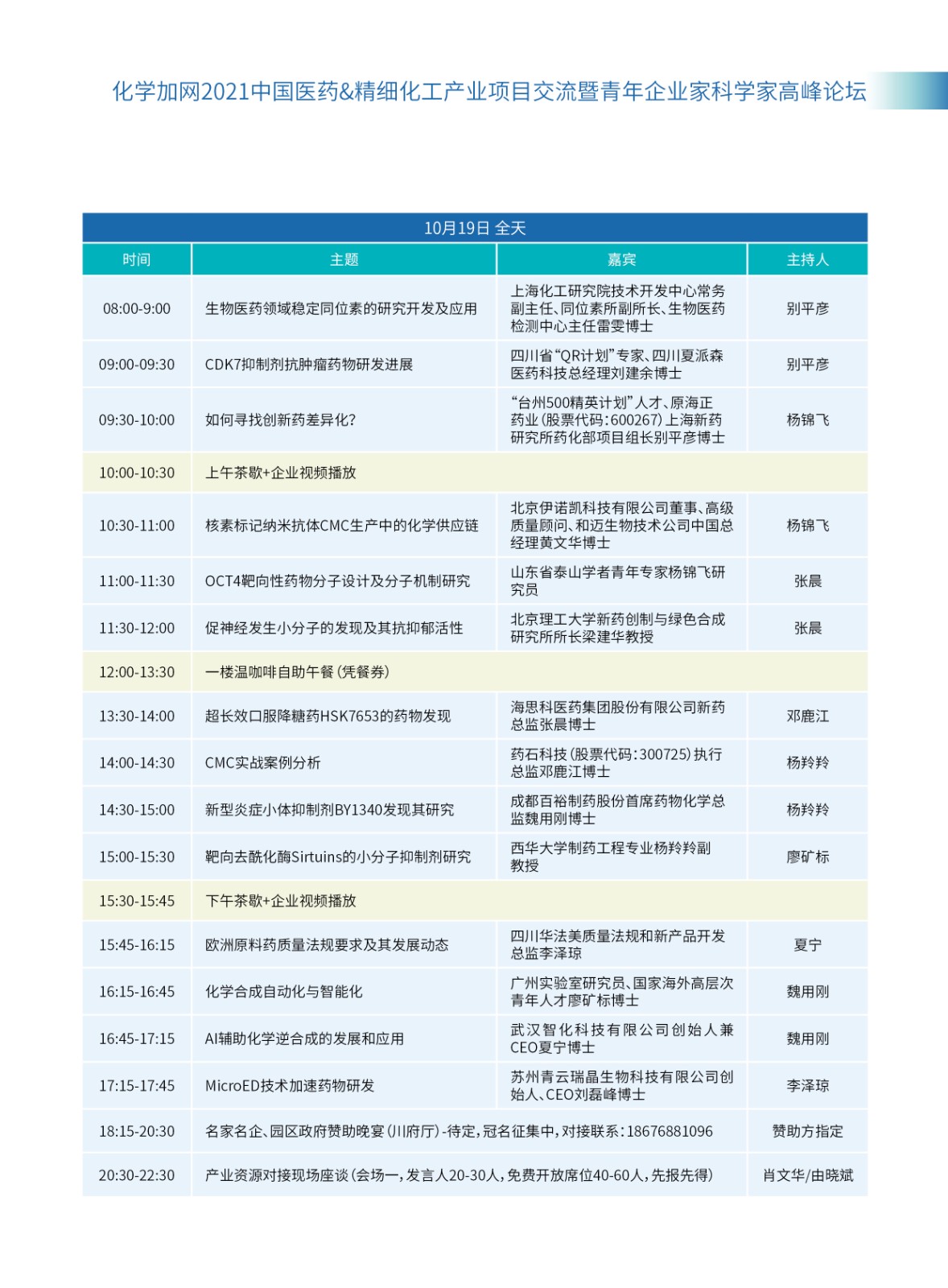 【下周一開幕】化學加網(wǎng)2021中國醫(yī)藥精細化工產(chǎn)業(yè)項目交流暨青年企業(yè)家科學家高峰論壇大會議程、分享嘉賓及合作單位一覽