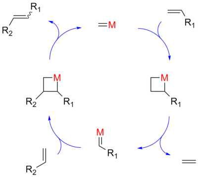 ▲烯烴復(fù)分解反應(yīng)催化機(jī)理(圖片來(lái)源:維基百科)