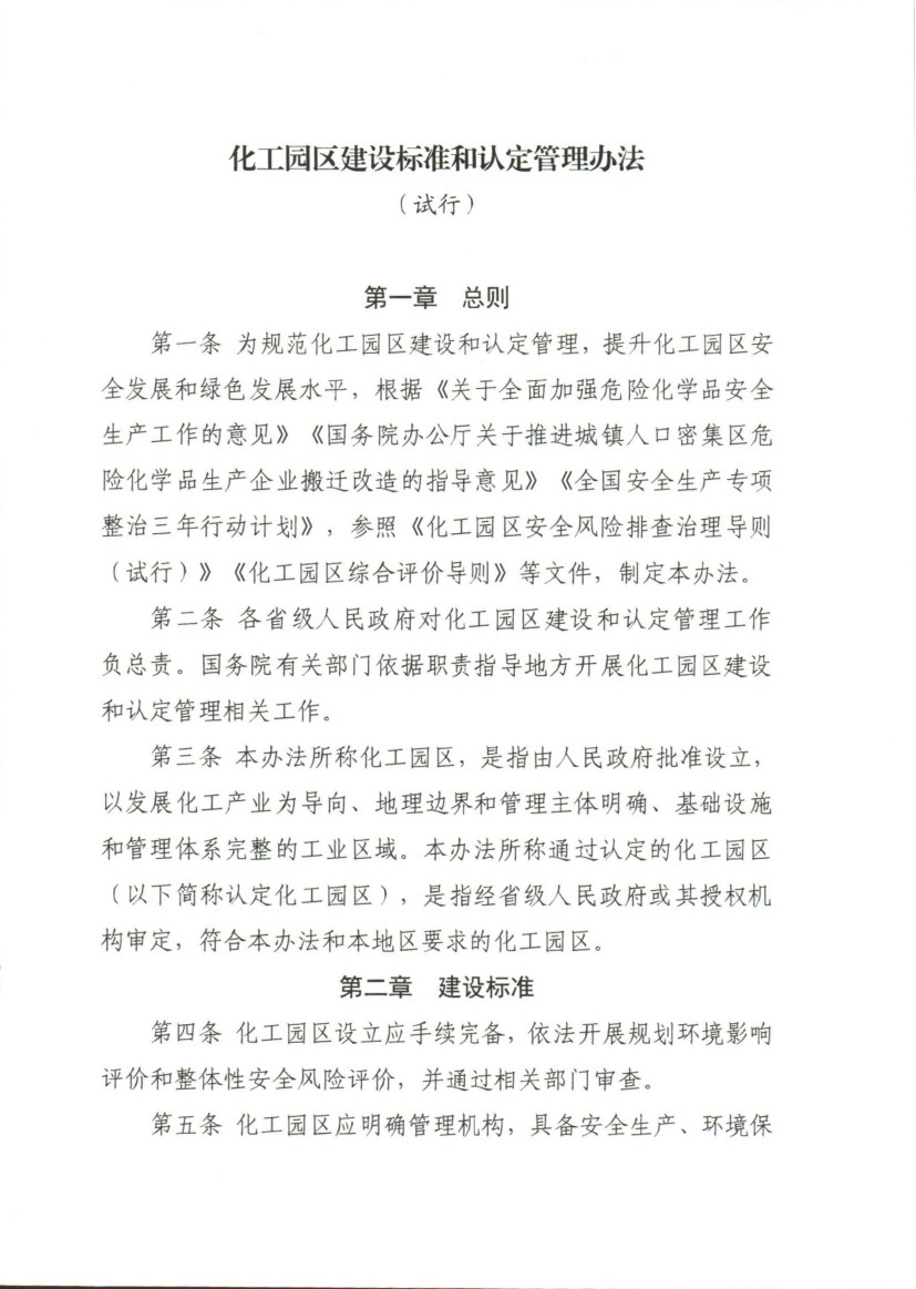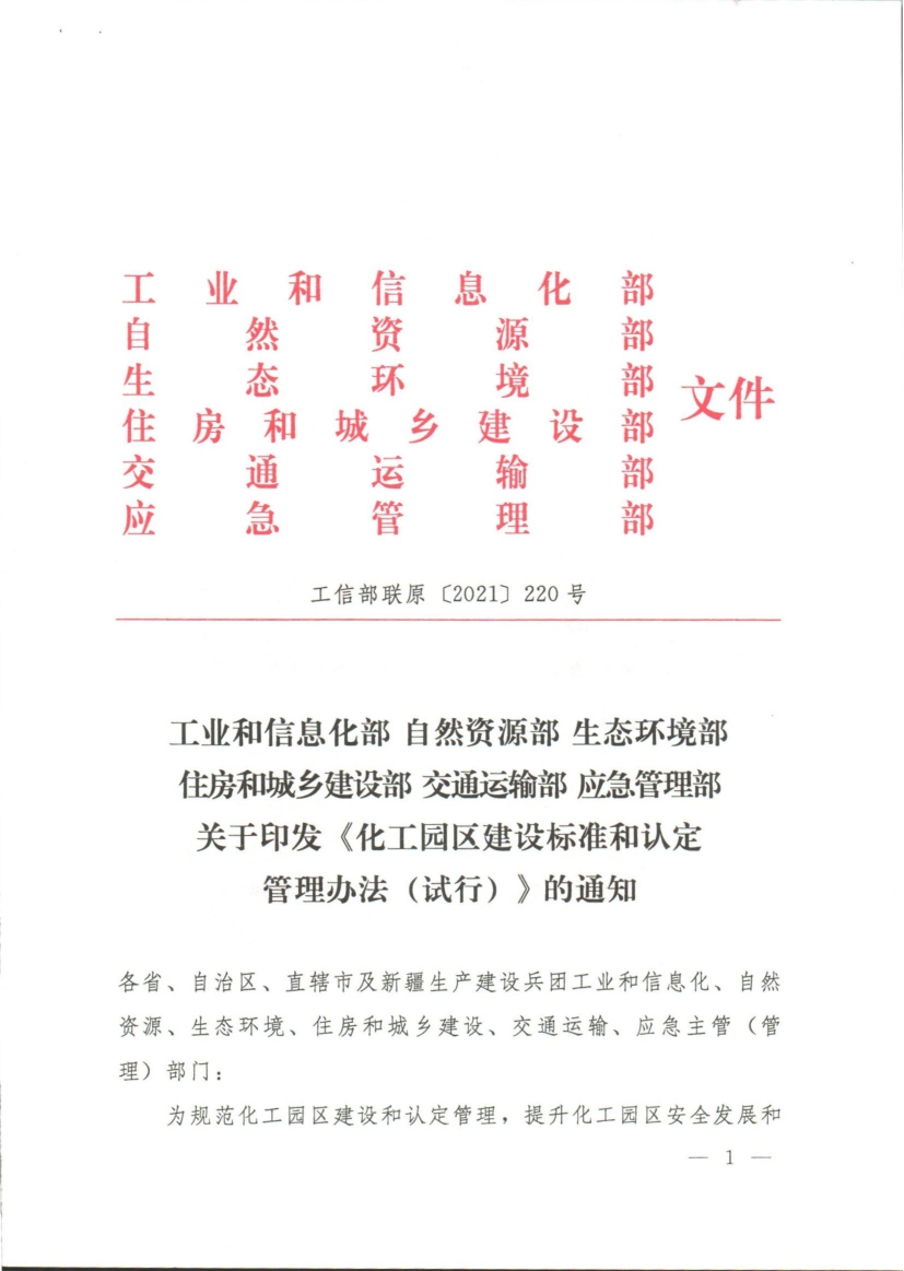 導讀:為規(guī)范化工園區(qū)建設(shè)和認定管理,提升化工園區(qū)安全發(fā)展和綠色發(fā)展水平,工信部等六部委近日聯(lián)合印發(fā)《化工園區(qū)建設(shè)標準和認定管理辦法(試行)》。