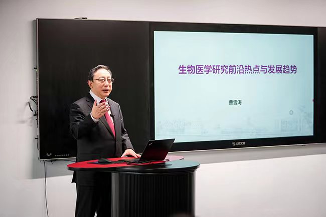 3月18日,由南開(kāi)大學(xué)醫(yī)學(xué)院開(kāi)設(shè)的 “名師引領(lǐng)”通識(shí)選修課《醫(yī)藥前沿與挑戰(zhàn)》迎來(lái)了第一講,中國(guó)工程院院士、南開(kāi)大學(xué)校長(zhǎng)曹雪濤以線上線下相結(jié)合的方式為大家講授了“生物醫(yī)學(xué)研究前沿?zé)狳c(diǎn)與發(fā)展趨勢(shì)”。