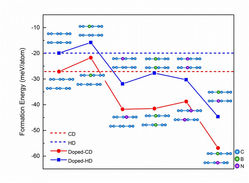 圖2. 不同摻雜方式的形成能(壓縮雙層石墨烯合成金剛石烯)