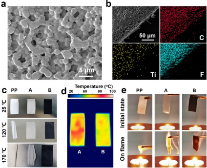 圖2. 耐高溫、耐火阻燃的醚-碳酸酯混合聚合物凝膠電解質(zhì)